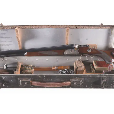 Sauer and Sohn Luftwaffe Issue M30 Survival Drilling with Original Metal Storage Case Manual Leather Sling Accessories and GI Capture Papers. I hope this of help. Larry Vickers of Vickers Tactical IncThis exact rifle was featured in the Vickers Guide - WWII Germany - and pictures from the book taken by Mr.